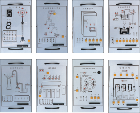 該裝置是為了配合PLC可編程控制器實驗臺使用而設(shè)計的外接演示裝置。它由LED發(fā)光二極管、大型LED數(shù)碼管、直流電機、步進電機等執(zhí)行機構(gòu)用其他外圍電路模擬實際工業(yè)控制過程中的狀態(tài),它形象生動的演示了PLC的整個執(zhí)行過程。通過該裝置,可以鍛煉學(xué)生的動手能力,能夠形象生動的執(zhí)行機構(gòu)驗證自己編寫程序的正確性,掌握PLC的實際應(yīng)用,增強學(xué)生對PLC的學(xué)習(xí)興趣。演示掛箱后蓋由鋁合金注塑而成,箱體結(jié)構(gòu)合理,工藝先進,美觀大方。該裝置在演示屏上位置可任意移動、互換。