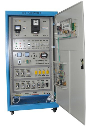 電工技能實(shí)訓(xùn)考核裝置是按照勞動(dòng)和社會(huì)保障部頒發(fā)的"工人等級(jí)標(biāo)準(zhǔn)"和"職業(yè)技能鑒定"規(guī)范要求而研制的,它是集培訓(xùn)、實(shí)操和鑒定為一體的多功能設(shè)備。裝置采用工業(yè)標(biāo)準(zhǔn)配電柜為主體,充分利用柜體的雙面空間,并進(jìn)行合理布局,配置可靠的元器件。可以完成《工廠電氣控制》、《電機(jī)拖動(dòng)》及儀表照明電路的實(shí)訓(xùn)教學(xué)。同時(shí)也滿足維修電工的初、中、高級(jí)技能考核內(nèi)容要求。