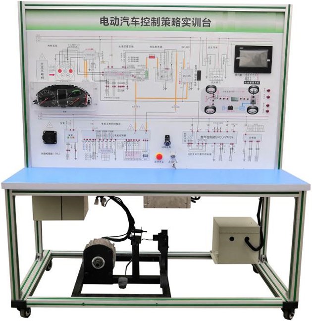 純電動汽車電控系統(tǒng)教學平臺采用純電動車控制策略系統(tǒng)(包含電機控制、電池管理、VCU控制、車載充電機、電源轉(zhuǎn)換系統(tǒng)、高壓安全系統(tǒng))的真實器件制作,包含電池及管理系統(tǒng)、電機及控制系統(tǒng)、車載充電系統(tǒng)、整車控制器VCU及控制系統(tǒng)、電源轉(zhuǎn)換系統(tǒng)(AC-DC模塊、DC-DC模塊、DC-AC模塊)、高壓安全系統(tǒng),真實展示電動汽車控制策略系統(tǒng)的結構原理與工作過程,純電動車控制策略系統(tǒng)動力性能、可靠性能、安全性能。實現(xiàn)控制策略演示驗證操作,包括起步模式、正常驅(qū)動模式、能量管理策略、安全控制策略以及其他情況下的控制策略等,并對控制策略進行檢測分析診斷。